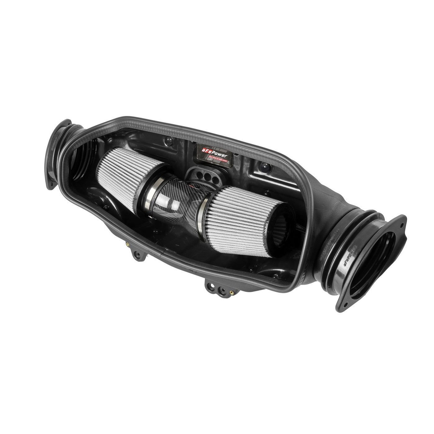 aFe is proud to introduce the Track Series Stage-2 carbon fiber intake system for the Next Generation Corvette. The Magnum Force intake system resulted in an additional 5 HP and 4 ft/lbs torque while outflowing the factory intake system by 5%. Lightweight dyno-tuned 100% carbon fiber tube construction. Utilizes factory mounting locations for a fast and easy installation. Requires minimal modification of OEM components.Large Three Layer Performance Air Filters:Dual 4″ Flange 360-degree radial flow air filters feature our oil-free Pro DRY S media with three layers of synthetic media for maximum convenience. Their progressive layering provides great filtration efficiency and dust holding capacity, while not requiring the use of oils. This media is best suited for street use. Their inverted tops make for more filter surface area, resulting in longer service intervals.Carbon Fiber Intake Tube:Lightweight twill weave carbon fiber tube directs the filtered air from the dual air filters to the engine. It is computer designed and dyno tested to increase air flow while reducing weight and enhancing the visual appearance of the engine bay. The tube is manufactured out of 100% carbon fiber material (No fiberglass).Heat-Resistant Housing:The dual air filters are surrounded by an open-element XLPE (cross-linked polyethylene) polymer housing that minimizes warm engine air for maximum performance. It is precisely designed and manufactured to fit perfectly into the factory mounting location. The housing connects to the factory air inlets on each side of the vehicle to capture the coolest air available. Silicone bellow couplings are used for engine movement and easy installation. All the factory harness and mounts are transferred to the back of the aFe POWER housing for a factory like installation. The radio antenna plastic melded on the factory air box is also transferred to the aFe POWER housing. The removal of the antenna from the factory air box requires two plastic melted mounting tabs to be cut off.Seals to the Trunk Cover:The seal trim installed on the housing edge seals to the plastic trunk cover to protect the air filters from unwanted warm engine air. This set up allows for more aggressive air intake noise while not sacrificing any performance.Premium Hardware:Premium stainless steel clamps and flexible silicone couplings are used for strength and durability while also providing the most secure installation available.Fitment Note on Convertible models: This item will fit convertible models but is not recommended because the seal trim will not seal properly to the trunk cover. PN: PM-930 andPM-931 is preferred for convertible models because the cover in those kits will properly seal the housing.Emission Note: This intake system is not CARB exempt at this time and is not legal for sale in California or use on vehicles registered with the California Department of Motor Vehicles.aFe Item Number 57-10013D