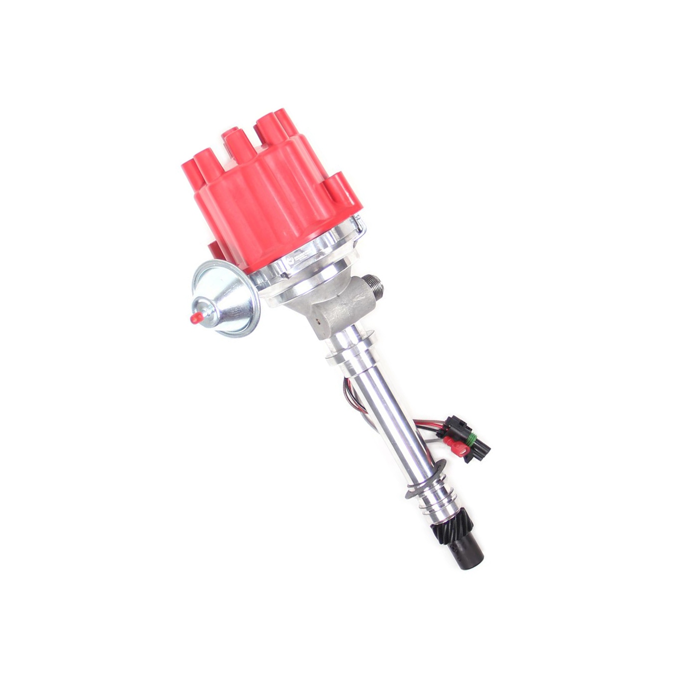 New 1962-1974 Corvette electronic tach drive distributor is a good way to replace a worn out original points distributor and keep your factory tachometer working as original. All the while fitting under your Corvette’s original ignition shielding for a factory looking installation.Teh Dragon Fire Pro Series Electronic Distributor uses a magnetic pickup and a module, which means it can be used with just an ignition coil – no need for an expensive or distracting aftermarket ignition box. The distributor also includes additional HD springs for vacuum advance or you can lock the timing if you decide to use a fuel injection kit or programmable ignition box. Includes wiring harness to connect distributor to coil.Dragon Fire Electronic Distributors use the stock style male spark plug wires. Zip offers multiple Dragon Fire universal wire sets that include both male and female distributor terminal boots. See related items for wire sets with standard or ceramic boots, 90 degree angle or straight options depending on application needs.Available with with either a black or red cap. See Zip # M-4311 for the black distributor cap option.Note: Does not include ignition coil, must be purchased separately. Stock oil filled coil is not recommended as this distributor requires full voltage instead of using a ballast resistor. Zip recommends the use of an aftermarket coil such as our Pertronix epoxy filled coils that will withstand the required voltage. (See Zip # E-1208).Dragon Fire Item Number DFD1009RF
