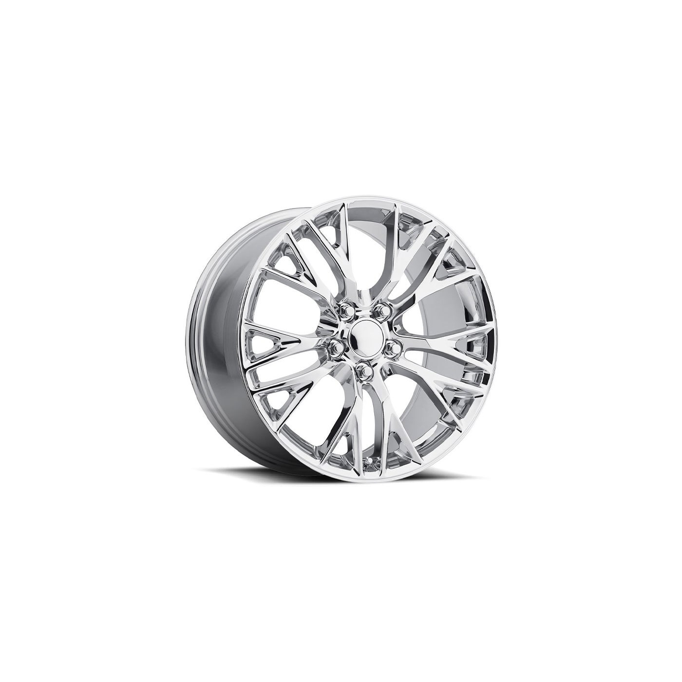 Update your 1984-1987 C4 Corvette with the latest C7 Corvette Stingray Z06 design reproduction wheels. Zip’s C7 “Z06″ Corvette wheel set includes (4) 18 x 9.5” wheels. Set includes chrome center caps and chrome lug nuts to complete the installation. See tire fitment below for correct size tire. All wheels feature the correct offset to be installed without wheel spacers.1984-1987 “Z06 Style” Chrome Wheel Set includes:(4) 18 x 9.5″ Front Wheels – +57 offset(4) Chrome Center Caps(20) Chrome Lug NutsTire Fitment:P275/40-18 or P285/35-18Corvette reproduction wheels are 1-piece cast aluminum, finished in triple-chrome plating. All wheels have a limited lifetime warranty – chrome and black chrome plating is covered under a 2-year warranty.