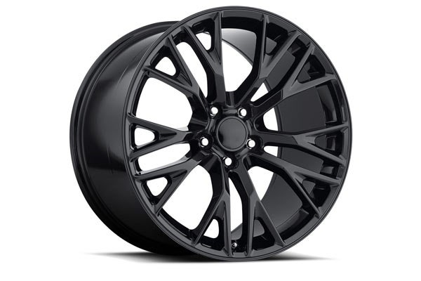 Update your 1988-2004 Corvette with the latest Z06 design Corvette reproduction wheels. Zip’s C7 Corvette Z06 Style wheel set includes (2) 17 x 8.5″ front & (2) 18 x 9.5″ rear wheels. Set includes black center caps and black lug nuts to complete the installation. Upgrade fitment for 1988-1996 Corvette except ZR1 or Grand Sport Corvettes, see tire specifications below. Direct fitment for 1997-2004 Corvettes. 1988-2004 Corvette “C7 Z06 Style” Gloss Black Wheel Set includes: (2) 17 x 8.5″ Front Wheels – +56 offset (2) 18 x 9.5″ Rear Wheels – +57 offset (4) Black Center Caps (20) Black Lug Nuts Stock Tire Fitment: Front Tire = P245/45ZR17 Rear Tire = P275/45ZR18 Corvette reproduction wheels are 1-piece cast aluminum, finished in gloss black. All wheels have a limited lifetime warranty – chrome and black chrome plating is covered under a 2-year warranty. Designed to be used with your C4 or C5 Corvette’s factory tires (or the same size) and factory wheel sensors.