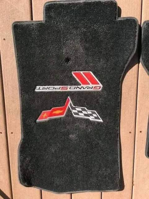 an excellent like new condition set of Lloyd C6 corvette floor mats including. They were in the car for only 4000 miles… Color is Ebony with the optional Grand Sport/ cross flags Logo.